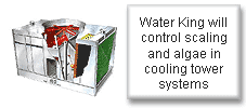 Where water is being constantly circulated, such as through a cooling tower, the Water-King unit should be fitted on the circulating system downstream from the pump and as close as possible to where the heating process or pressure drop is occurring. There is no need to treat the make up water.